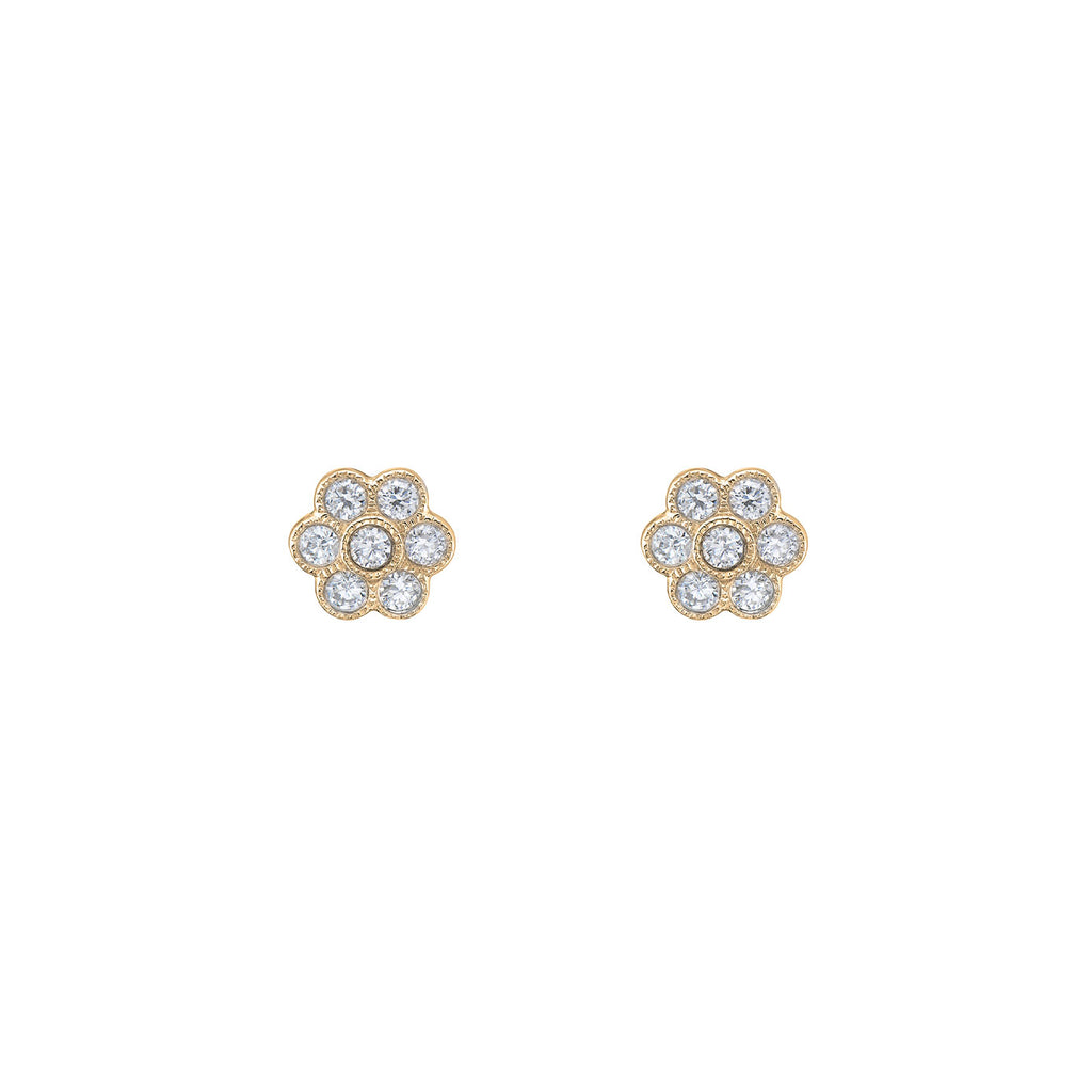 14 Karat Yellow Gold Flower Stud Diamond earrings