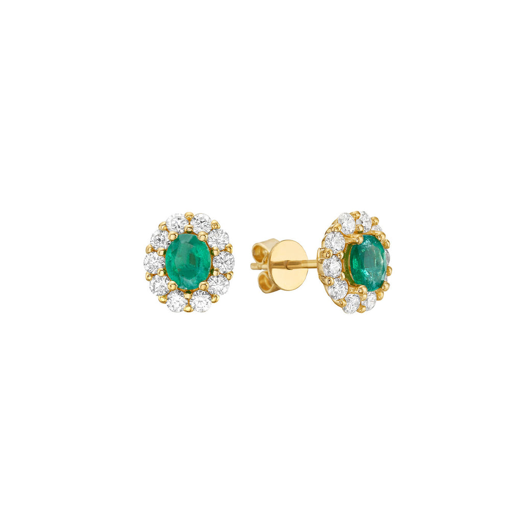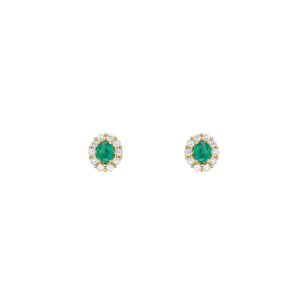 14 Karat Yellow Gold Oval emerald stud earrings