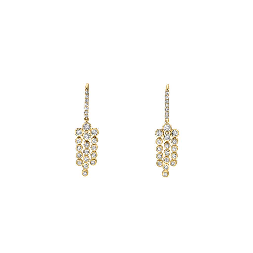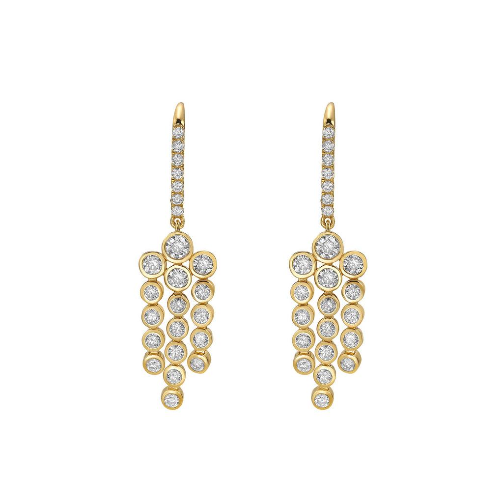 18 Karat Yellow Gold Bezel Chandelier Drop Diamond Earrings